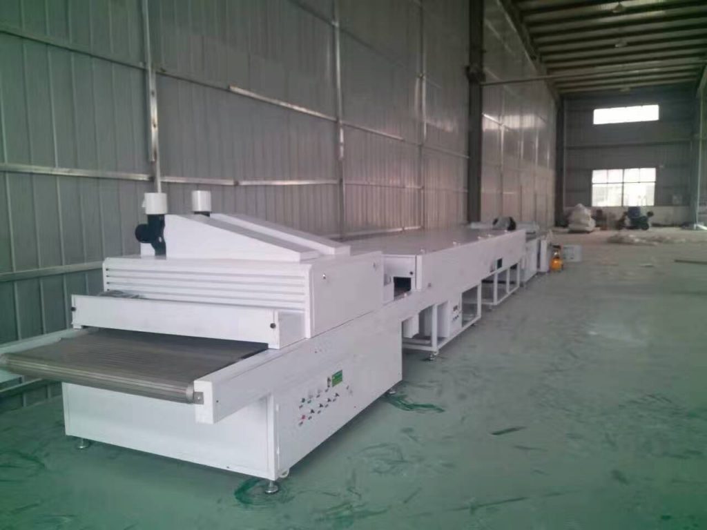 此套流水線非常適合于廠房長(zhǎng)度短、前期資金緊張的用戶。本套流水線主要用于集成墻板打印圖案后上UV光油,做出來(lái)的成品平整度好、硬度高、附著力好、耐黃變,不變形。流水線包含淋涂機(jī)、流平機(jī)、UV光固機(jī)。此條流水線可根據(jù)客戶需求量身定做。